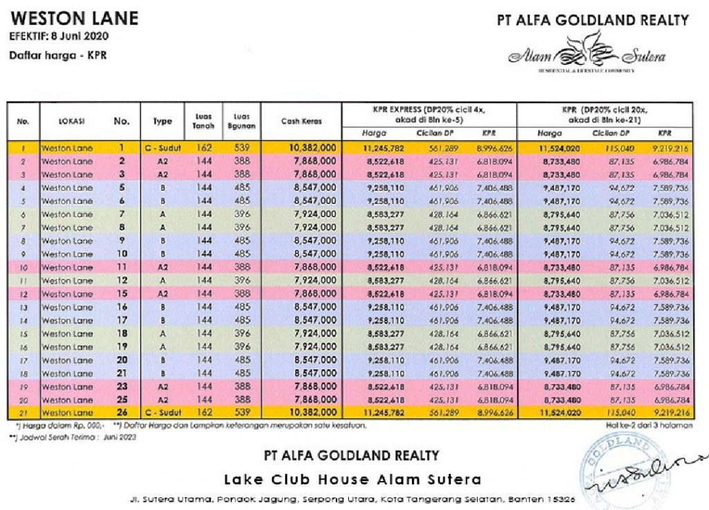 CARA PEMBAYARAN DAN SIMULASI CICILAN RUKO WESTON LANE ALAM SUTERA: